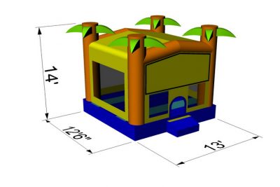 The BOU-113 is a tropical delight and must have for any successful inflatable rental business. On the inside is the spacious bounce area of 169 sq. ft. and includes an inflatable basketball hoop inside for kids to slam dunk with any standard size basketball. The jumper is yellow and features marvelous 3-D palm trees on all four corners of the unit. It’s perfect for tropical, beach, or Hawaiian themed parties! On the front of the unit is a Velcro panel that can accommodate any standard medium-sized art panel. Customize the bouncer to fit any themed celebration.
