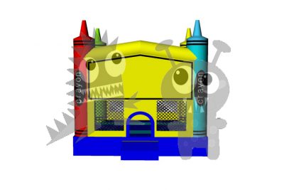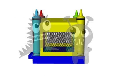 The BOU-124 invokes inspiration and creativity in everyone and is a must-have for any successful inflatable rental business. On the inside is the spacious bounce area of 169 sq. ft. and includes an inflatable basketball hoop inside for kids to slam dunk with any standard size basketball. The jumper is yellow and blue featuring marvelous colorful 3-D crayon spires on all four corners of the unit. It’s perfect for that creative person in your family! On the front of the unit is a Velcro panel that can accommodate any standard medium sized art panel. Customize the bouncer to fit any themed celebration.